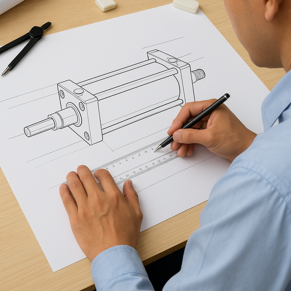 งานลอกแบบกระบอกนิวแมติกและไฮดรอลิก